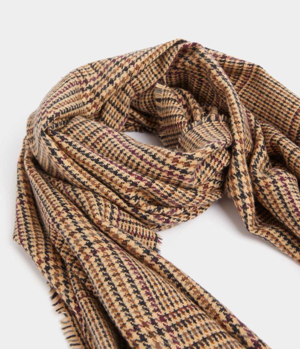 Bufandas con diseño a cuadros confeccionada en 100% acrílico. Terminación de flecos decorativos y tacto suave.