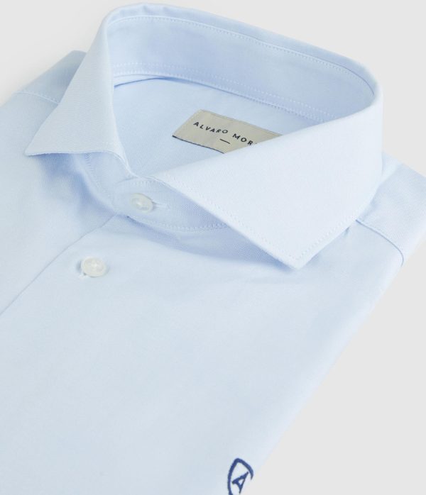 Camisa de vestir confeccionada en tejido con una suave estructura. Cuenta con cuello italiano, manga larga con puños dobles y logo de la marca grabado al frontal. Corte slim fit.