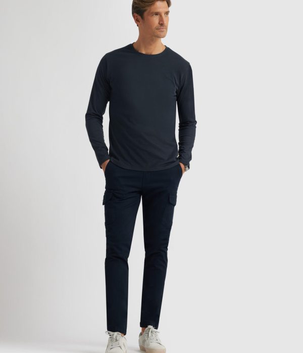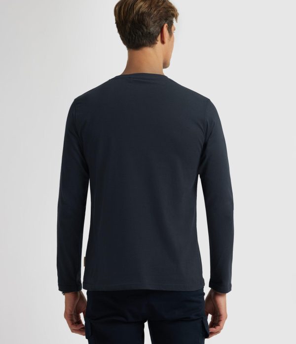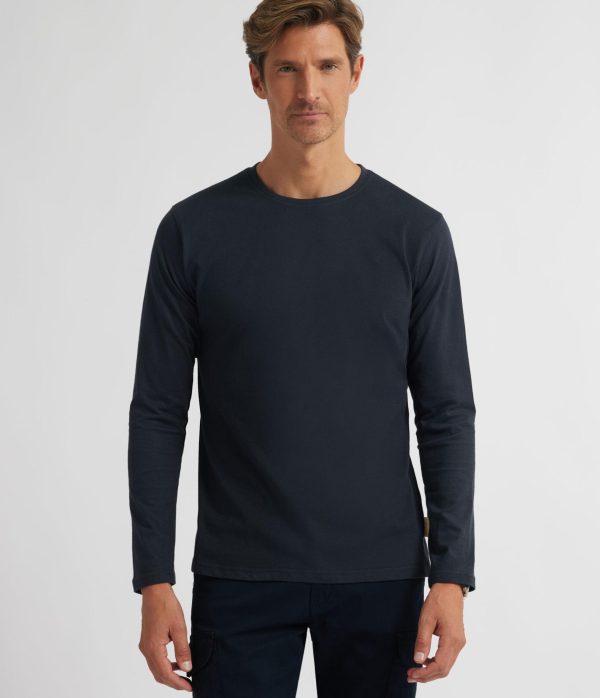 Camiseta confeccionada en algodón de manga larga. Cuenta con cuello redondo, logo de la marca grabado en el frontal al tono y etiqueta canvas en el lateral. Corte regular fit.