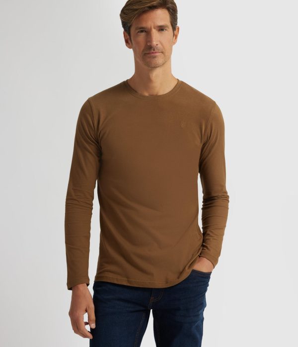 Camiseta confeccionada en algodón de manga larga. Cuenta con cuello redondo, logo de la marca grabado en el frontal al tono y etiqueta canvas en el lateral. Corte regular fit.