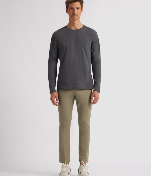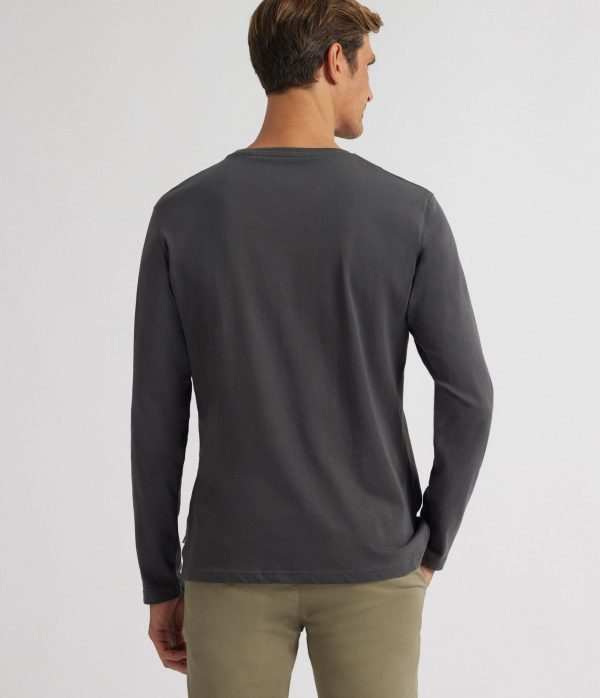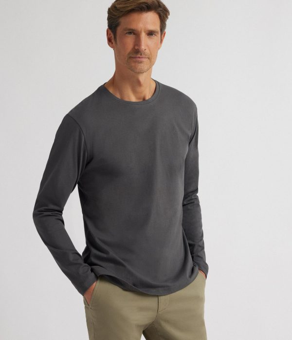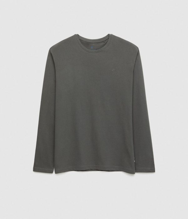 Camiseta de manga larga con cuello redondo, logo de la marca grabado al tono en el frontal y etiqueta canvas en el lateral. Corte regular fit.