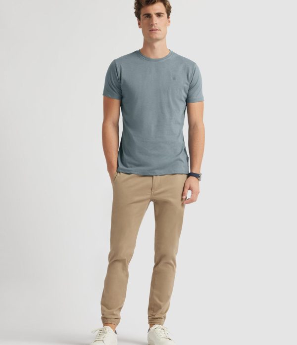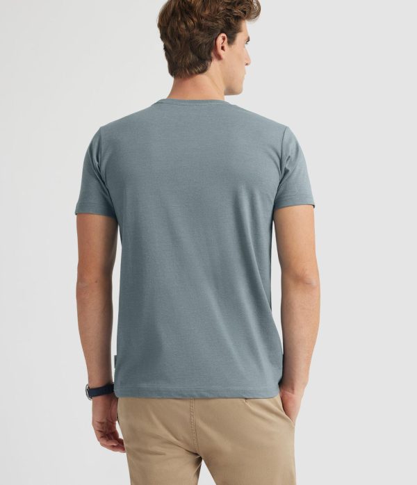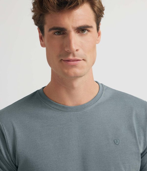 Camiseta confeccionada en tejido jaspeado de corte regular fit. Cuenta con cuello a la caja, manga corta y logo grabado al tono en el frontal.