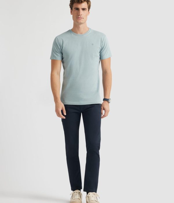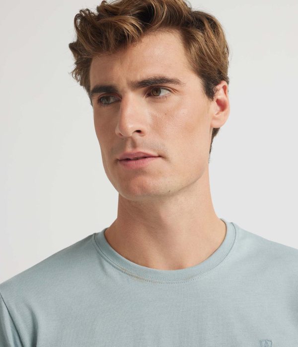 Camiseta confeccionada en tejido jaspeado de corte regular fit. Cuenta con cuello a la caja, manga corta y logo grabado al tono en el frontal.