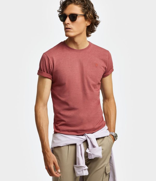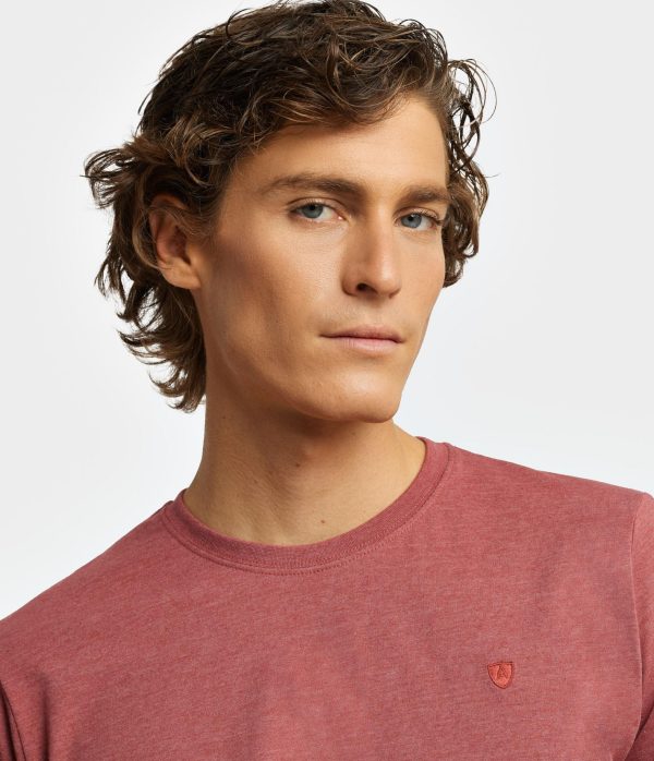 Camiseta confeccionada en tejido jaspeado de corte regular fit. Cuenta con cuello a la caja, manga corta y logo grabado al tono en el frontal.