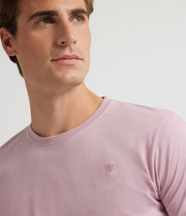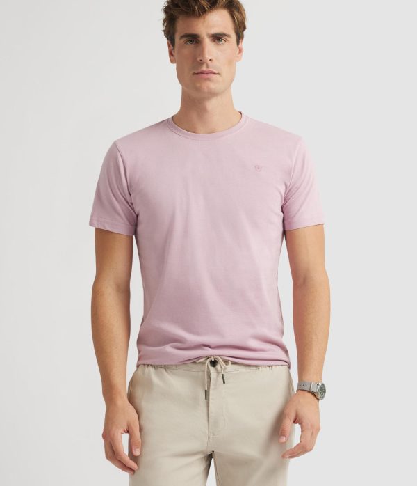 Camiseta confeccionada en tejido jaspeado de corte regular fit. Cuenta con cuello a la caja, manga corta y logo grabado al tono en el frontal.
