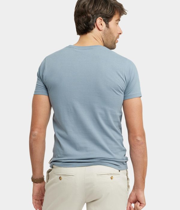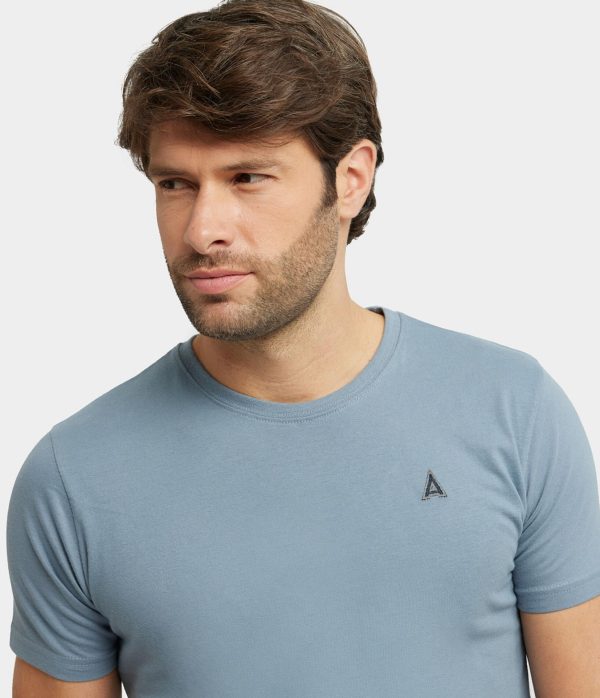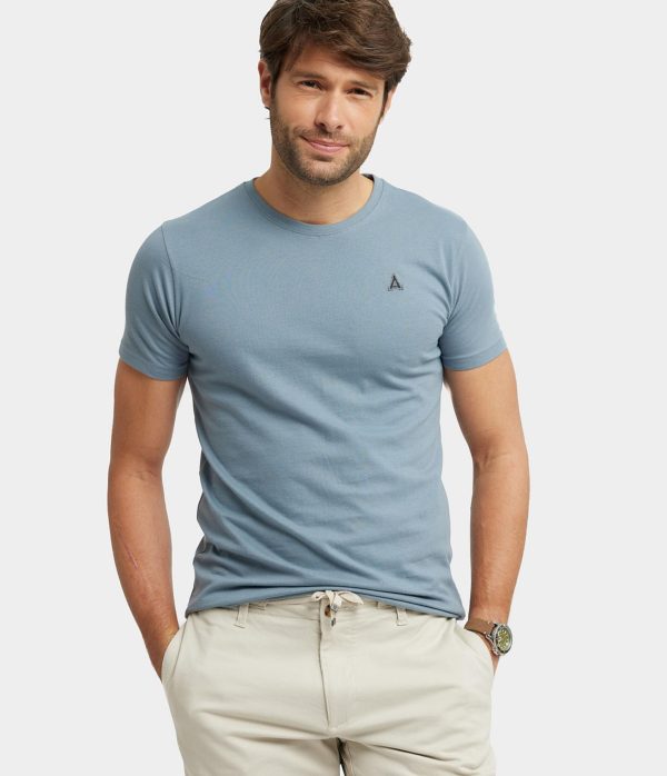 Camiseta básica con cuello redondo, manga corta y logo de la marca grabado en el frontal. Corte regular fit.