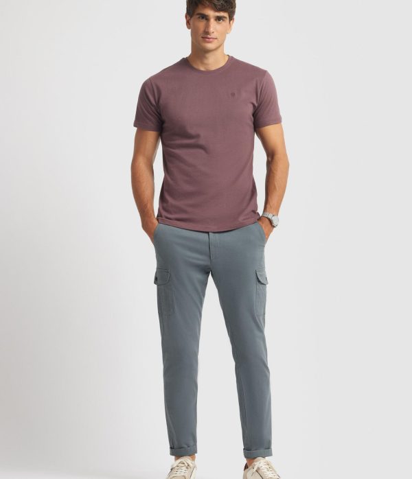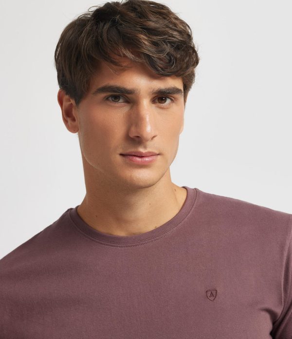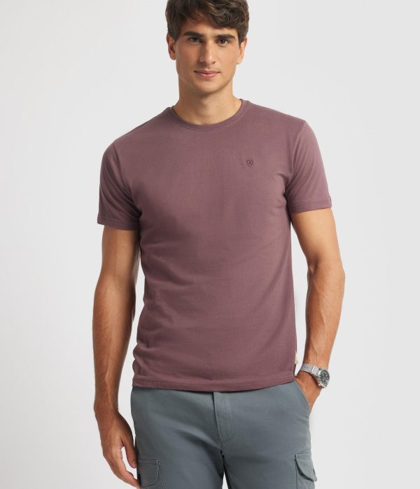 Camiseta lisa confeccionada en algodón con cuello redondo, manga corta y logo de la marca grabado al tono en el frontal. Corte regular fit.