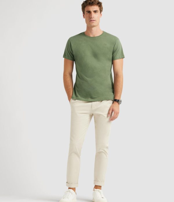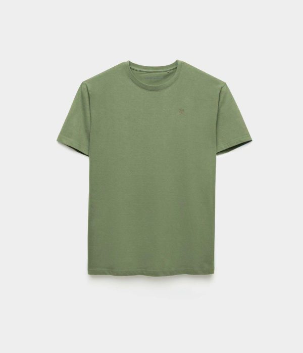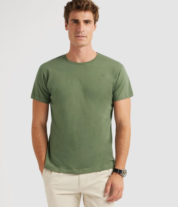 Camiseta lisa confeccionada en algodón con cuello redondo, manga corta y logo de la marca grabado al tono en el frontal. Corte regular fit.