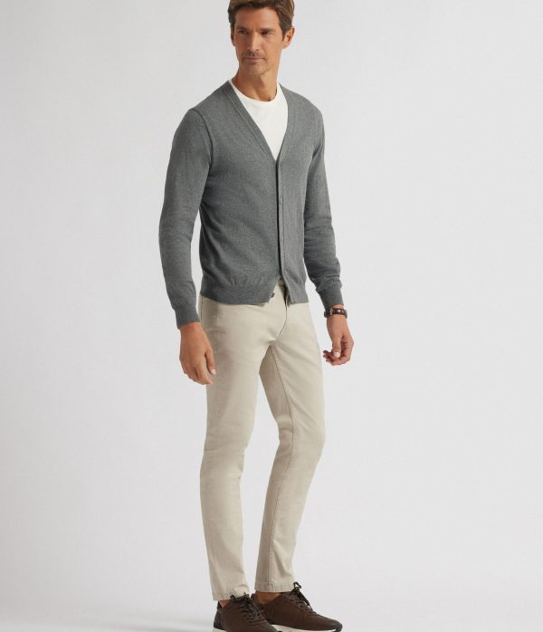 Cárdigan confeccionado en algodón y nylon con cierre central mediante botonadura. Manga larga con acabado de puños ribeteados, logo de la marca grabado al tono a la altura del pecho y corte regular fit.