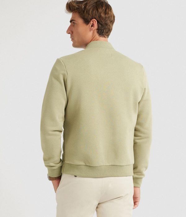 Cazadora estilo bomber con cuello y mangas en tejido de punto. Cuenta en su parte delantera con cierre central mediante cremallera, dos bolsillos y parche con el logo de la marca grabado en el pecho.