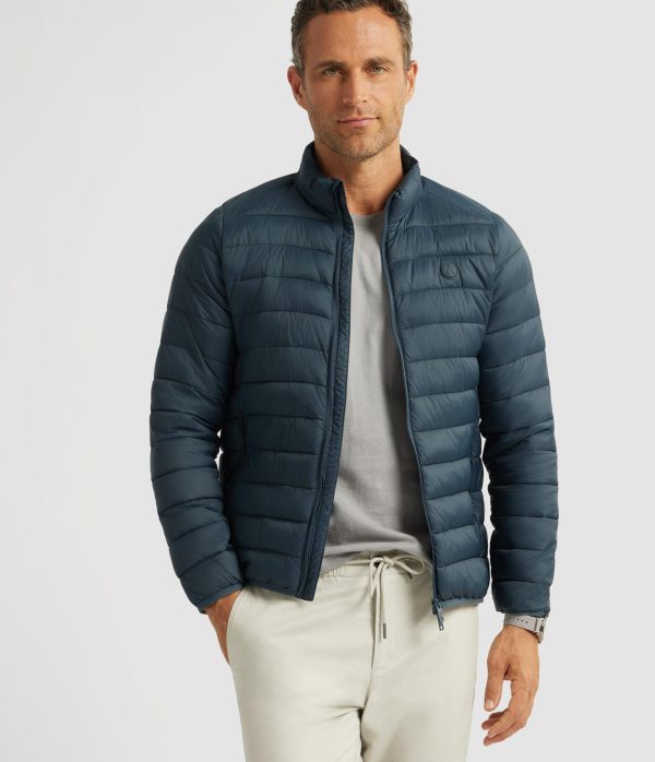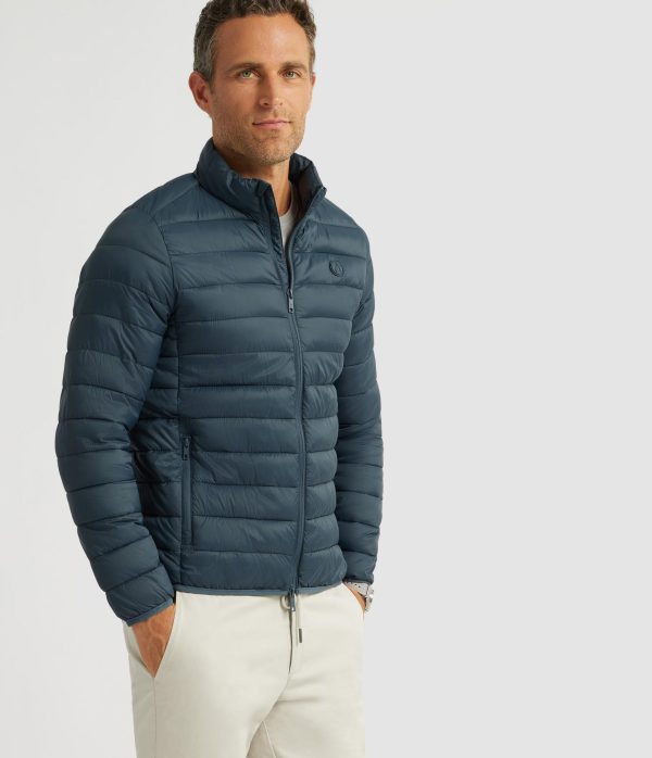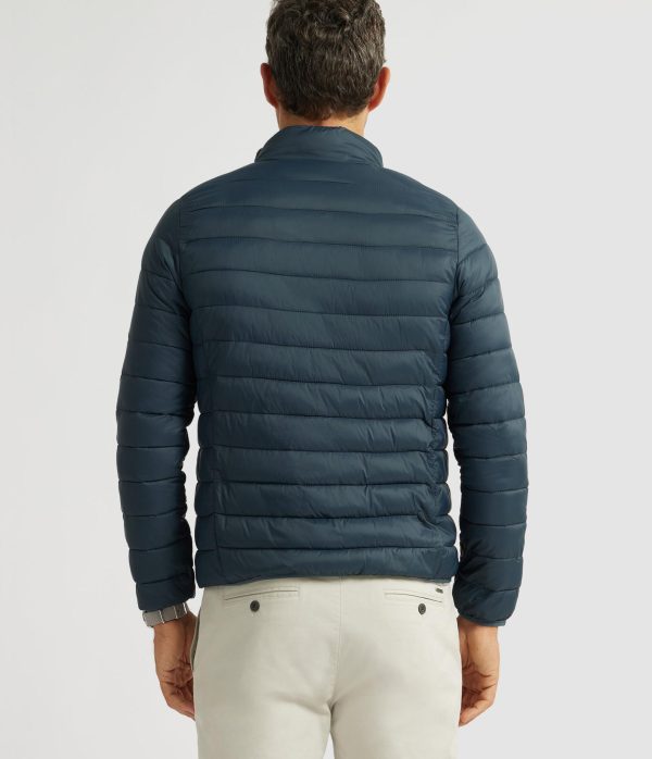 Cazadora acolchada con cuello subido, cierre central mediante cremallera, manga larga con puños elásticos y dos bolsillos en la cintura con cierre mediante cremallera. Detalle personalizado en el frontal. Interior con bolsillo.