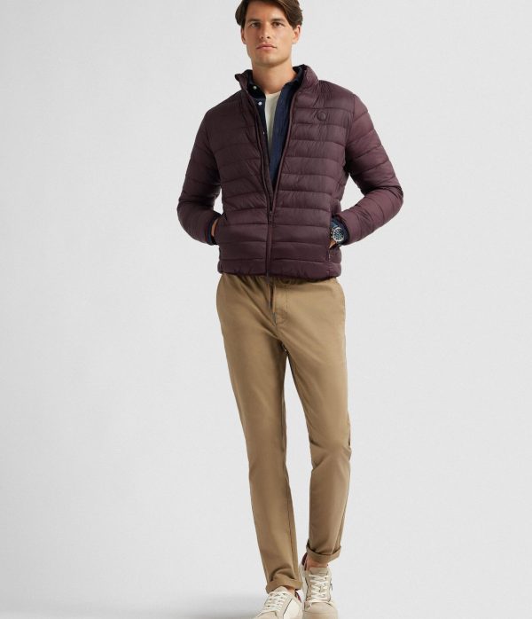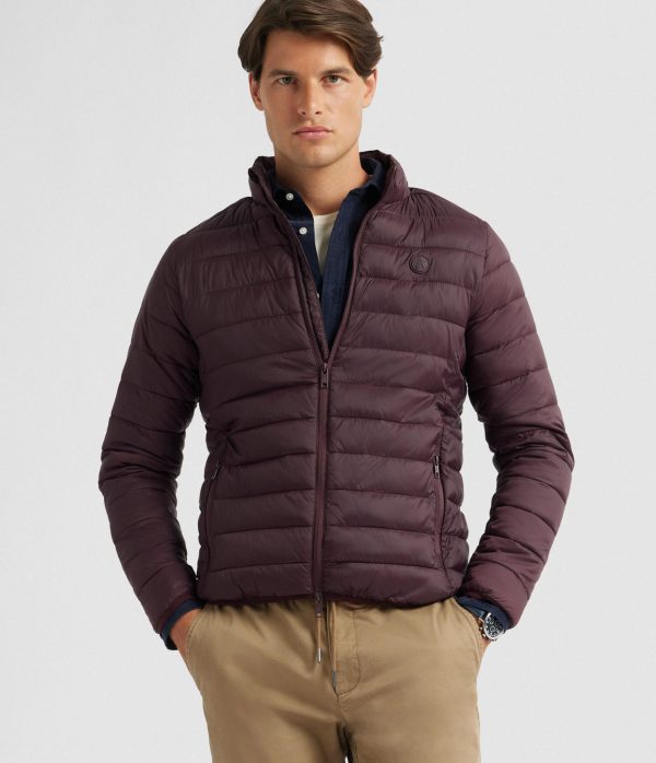 Cazadora acolchada con cuello subido, cierre central mediante cremallera, manga larga con puños elásticos y dos bolsillos en la cintura con cierre mediante cremallera. Detalle personalizado en el frontal. Interior con bolsillo.
