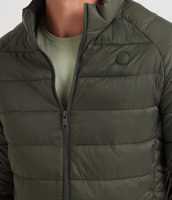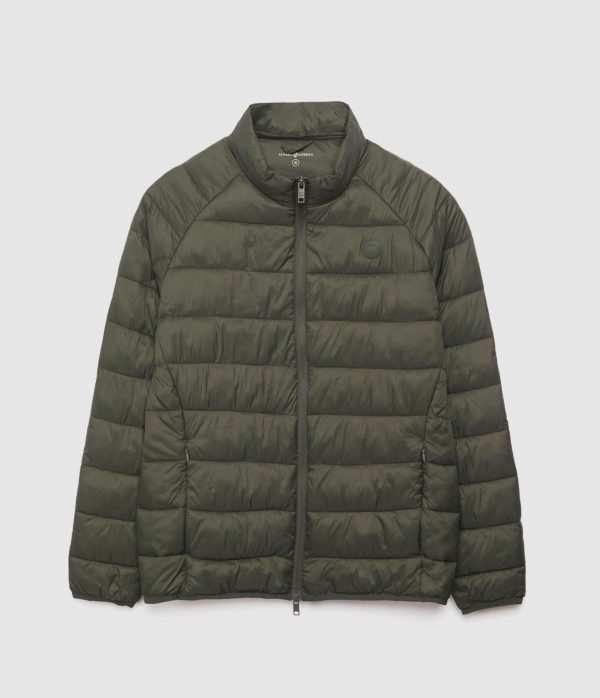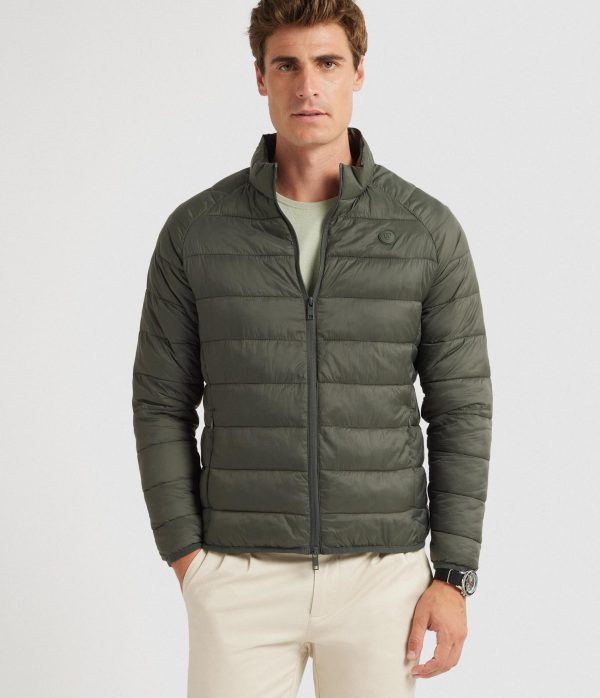Cazadora acolchada con cuello subido. Cuenta con cierre central mediante cremallera, manga larga con puños elásticos y logo de la marca grabado en el frontal al tono. Bolsillo en el interior.