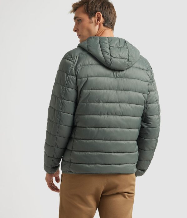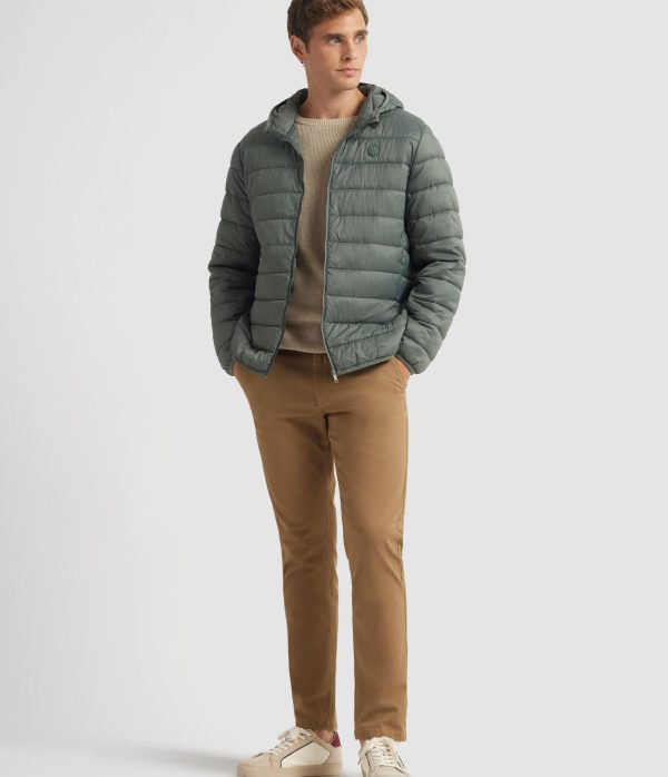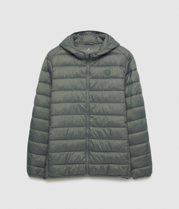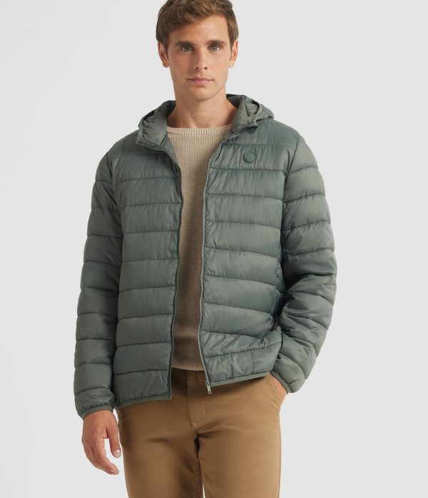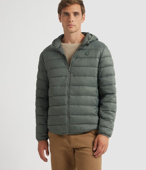 Cazadora acolchada con gorro. Cuenta con cierre central mediante cremallera, manga larga con puños elásticos y logo de la marca grabado en el frontal al tono. Bolsillo en el interior.
