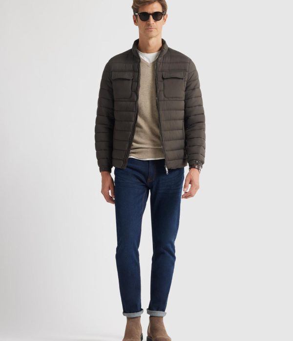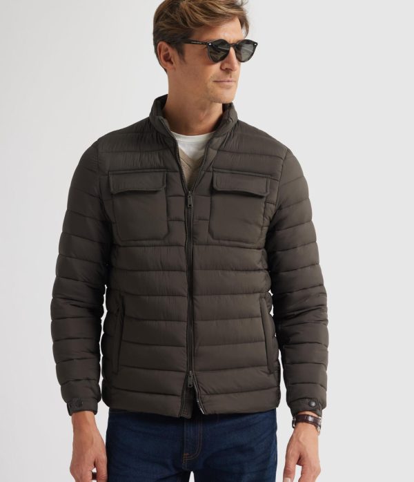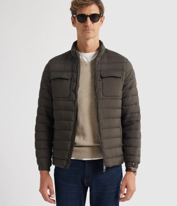 Cazadora acolchada con cuello subido de corte regular fit. Cuenta con cierre central de cremallera, manga larga con puños ajustables, dos bolsillos a la altura del pecho y dos bolsillos en la cintura. Forro y bolsillo interior.