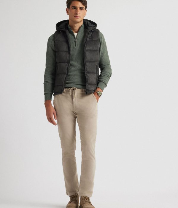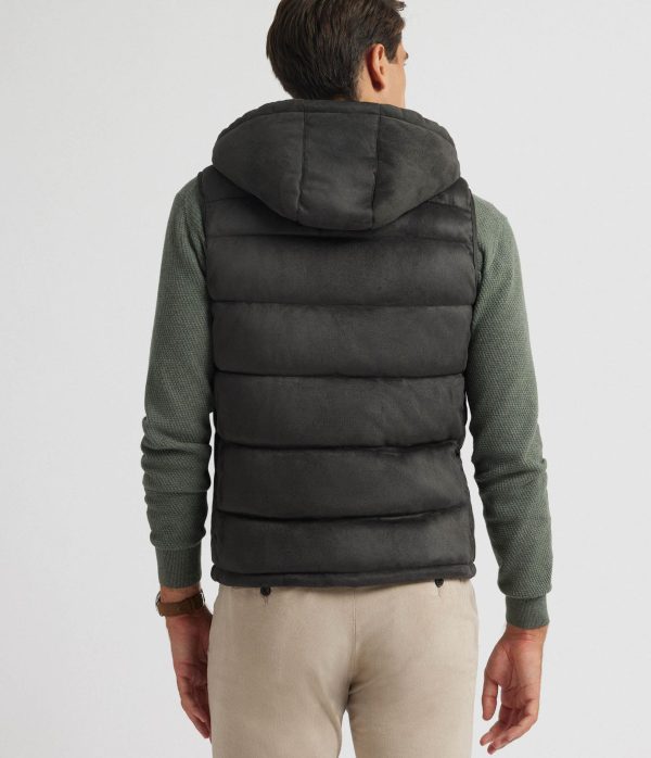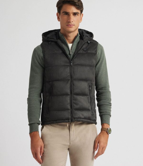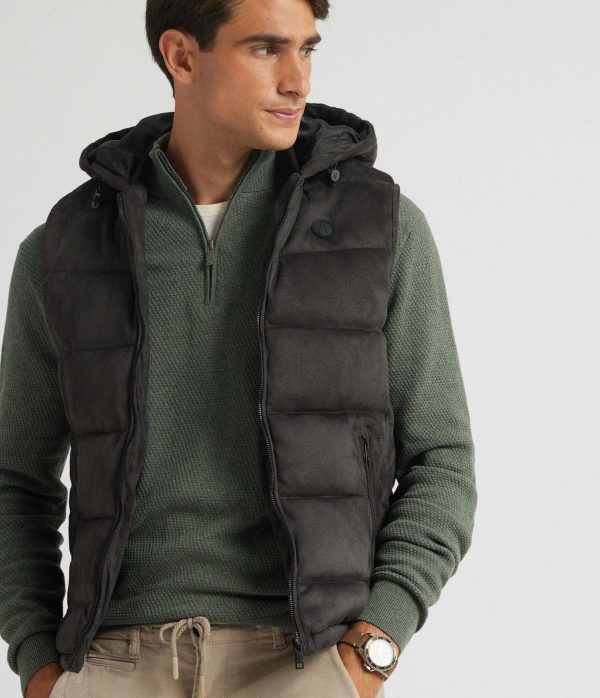 Chaleco acolchado con gorro ajustable, cierre central mediante cremallera, dos bolsillos con cierre de cremallera en la cintura y logo de la marca grabado en el frontal a contraste. Interior forrado con bolsillo. Corte regular fit.