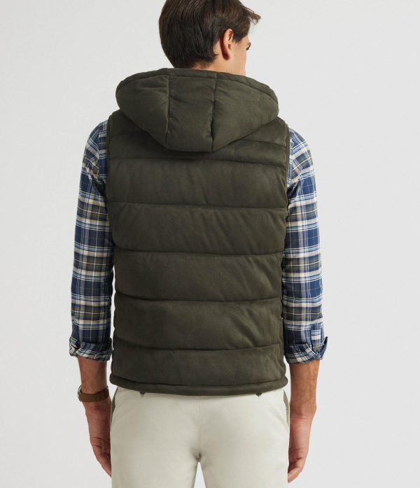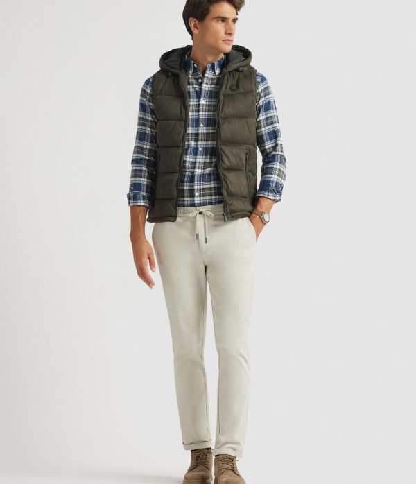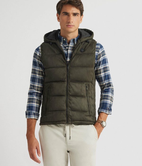 Chaleco acolchado con gorro ajustable, cierre central mediante cremallera, dos bolsillos con cierre de cremallera en la cintura y logo de la marca grabado en el frontal a contraste. Interior forrado con bolsillo. Corte regular fit.