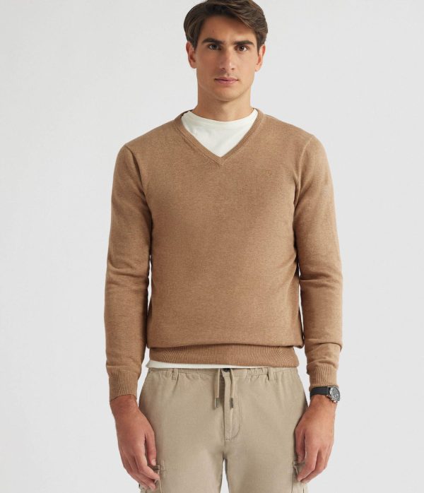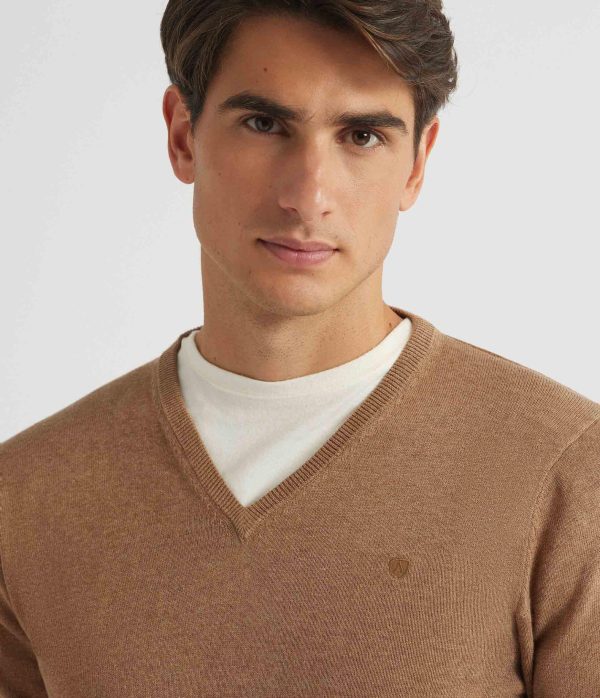 Jersey confeccionado en algodón con cuello de pico, logo de la marca grabado en el frontal al tono y cuello, puños y bajo en acabado ribeteado. Corte regular fit.
