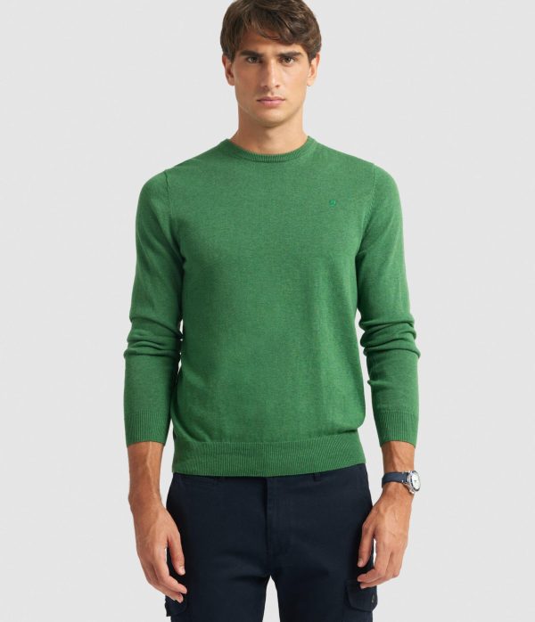Jersey confeccionado en algodón de corte regular fit. Cuenta con cuello a la caja, logo de la marca bordado en el pecho al tono y puños, bajo y cuello en acabado ribeteados.