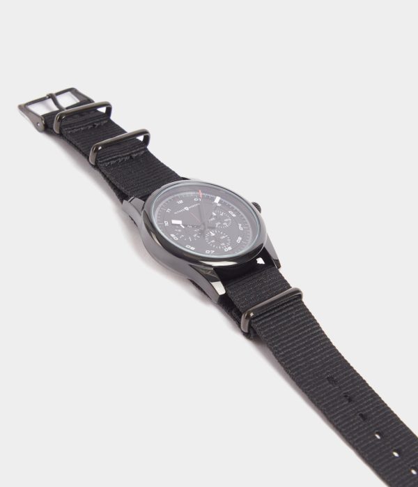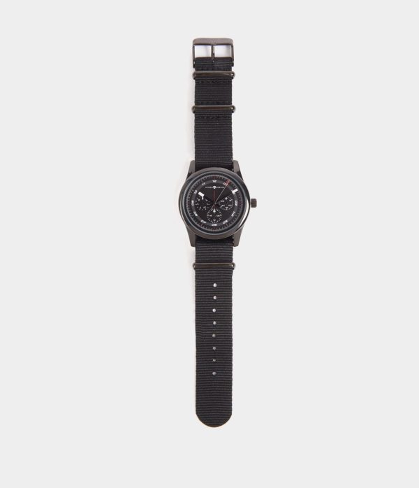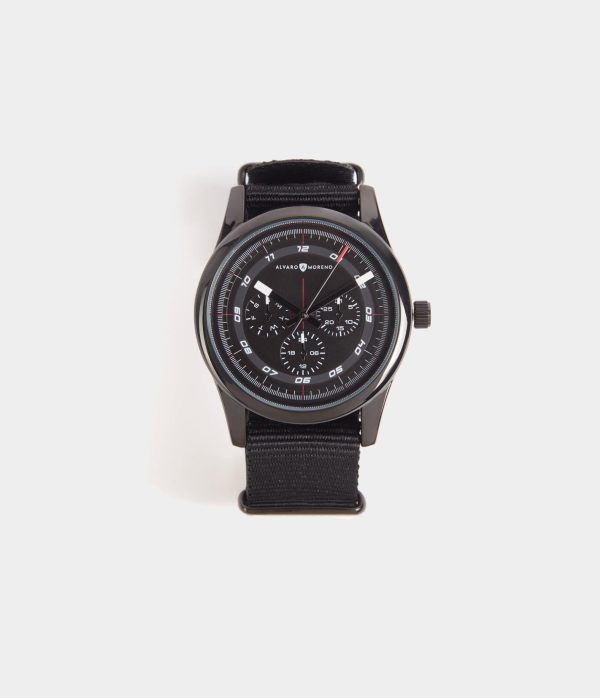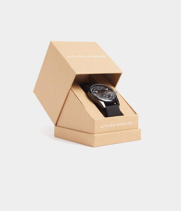 Reloj con movimiento de cuarzo japonés con esfera metalizada y tapa trasera en acero inoxidable. Detalle de cronómetros decorativos y cierre de hebilla metalizada con el logo de la marca grabado.