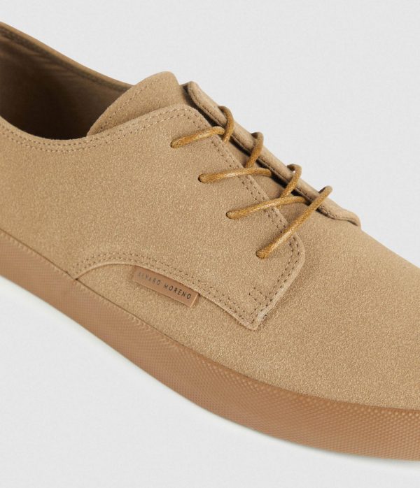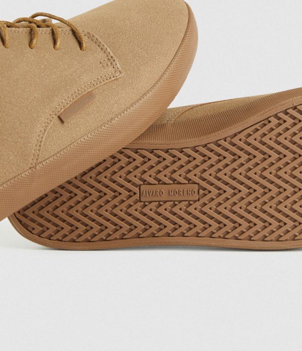 Sneakers confeccionadas en tejido de antelina. Cuenta con cordones de hasta cuatro pasados, suela de goma color caramelo y talón reforzado mediante tira. Detalle personalizado en el lateral.