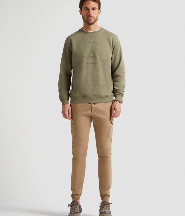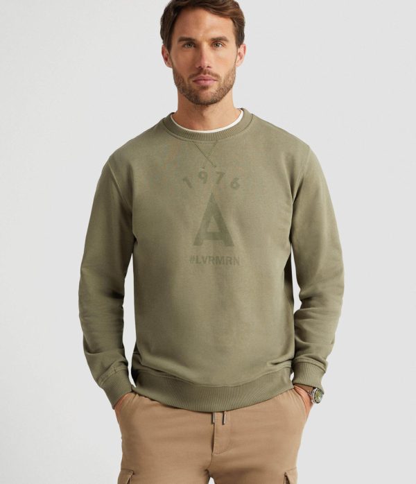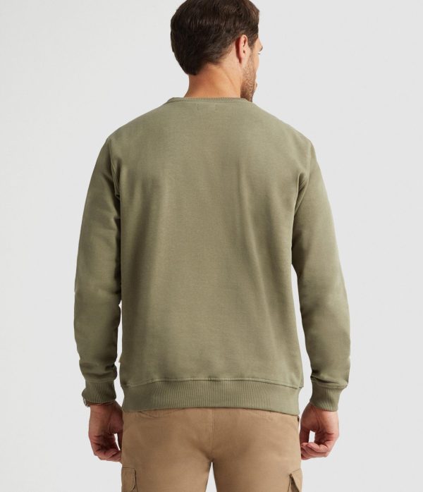 Sudadera con estampación personalizada en el frontal al tono, manga larga y cuello redondo. Puños, bajo y cuello en acabado elástico. Etiqueta canvas en el lateral. Corte regular fit.
