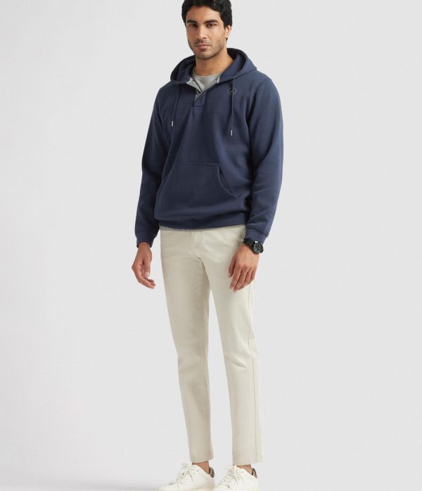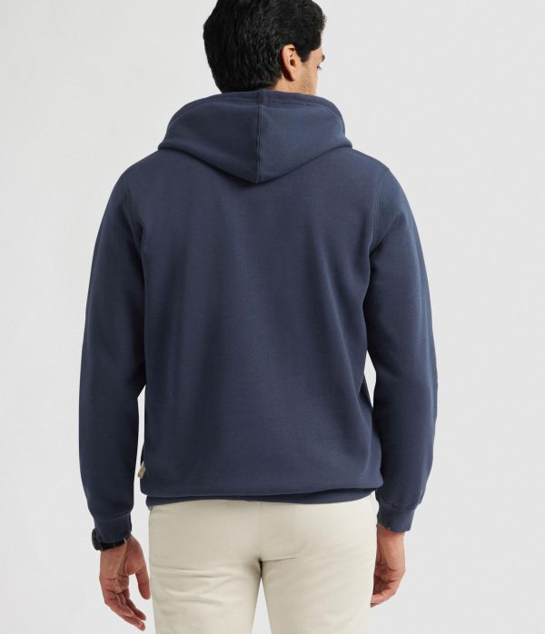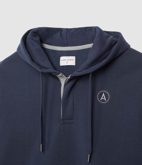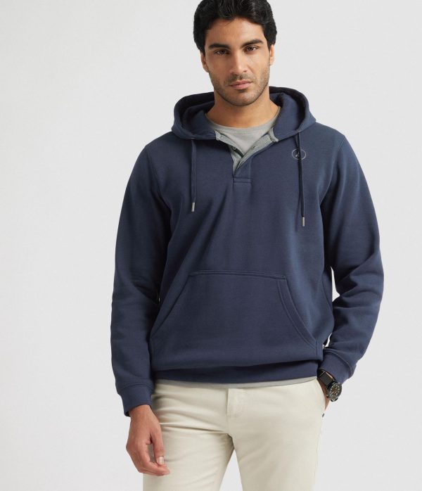Sudadera con gorro ajustable mediante cordón al tono, tapeta en el cuello de cierre mediante dos botones, bolsillo estilo canguro y logo de la marca grabado en el frontal. Corte regular fit.