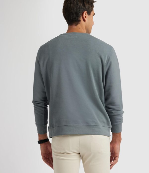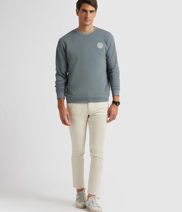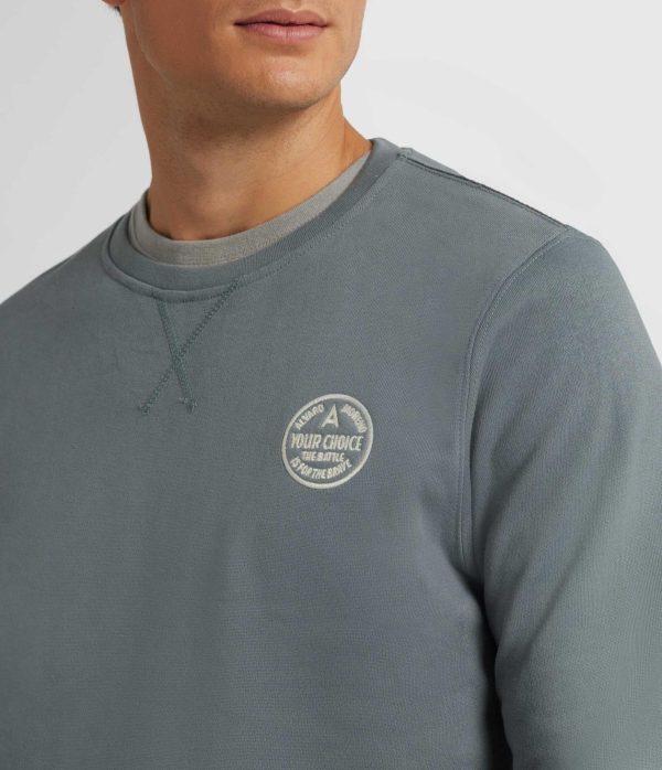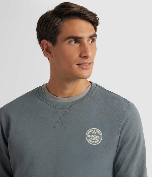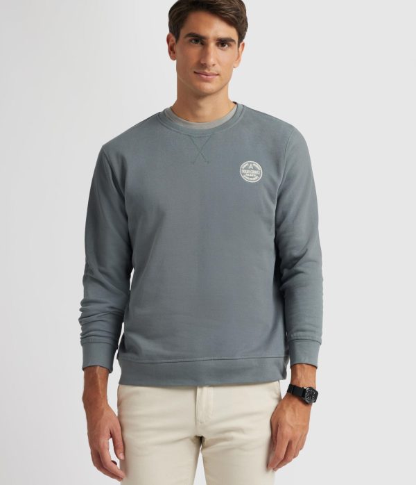 Sudadera con detalle personalizado al tono a la altura del pecho. Cuenta con cuello redondo, manga larga y puños y bajos en acabado elástico. Corte regular fit.