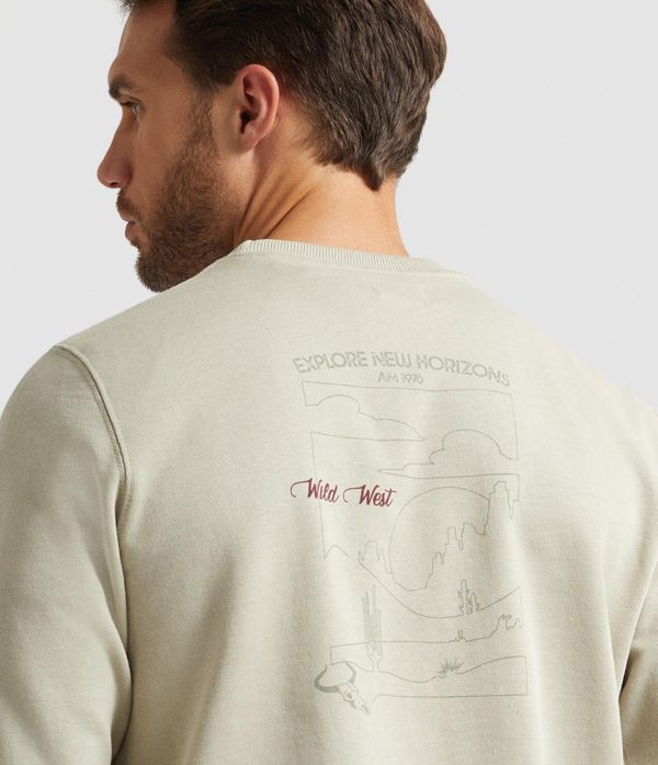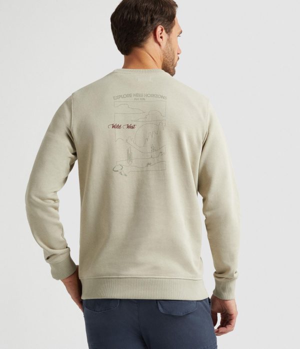 Sudadera con estampado personalizado en la parte trasera y en el frontal a la altura del pecho. Cuenta con cuello redondo, manga larga y etiqueta canvas en el lateral. Puños, bajo y cuello en acabado elástico. Corte regular fit.