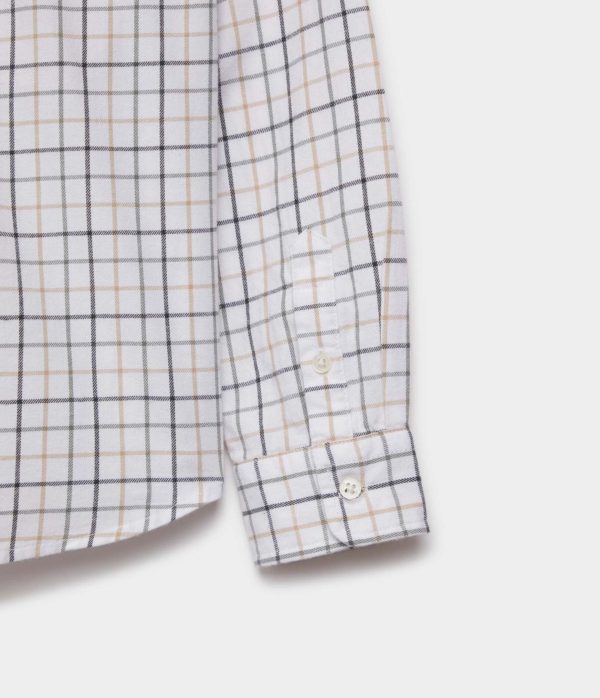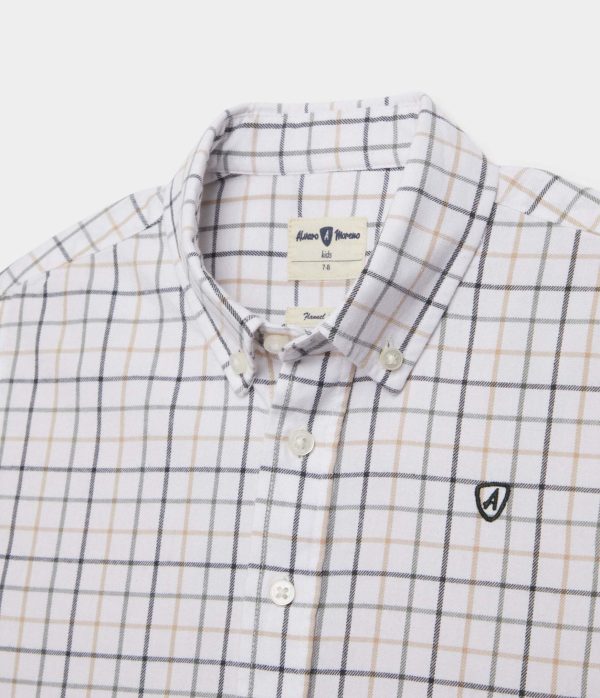 Camisa con diseño a cuadros confeccionada con un suave tacto de franela aportando calidez. Cuenta con cuello de botón, manga larga simple y logo de la marca grabado en el frontal. Corte regular fit.