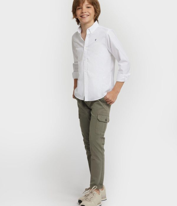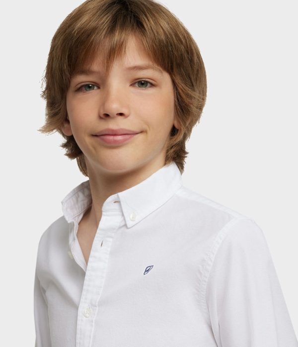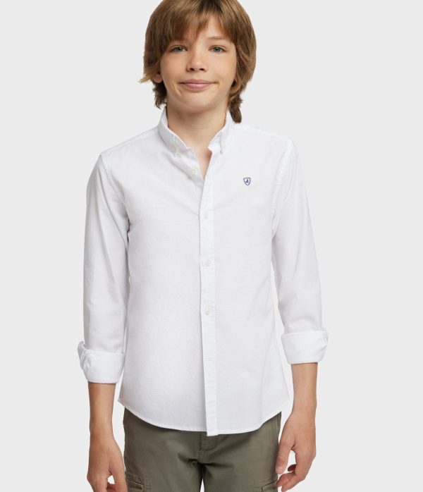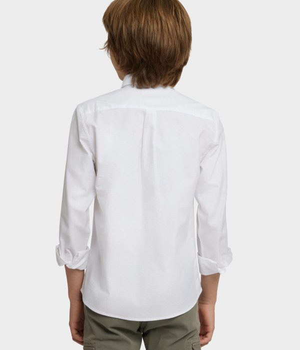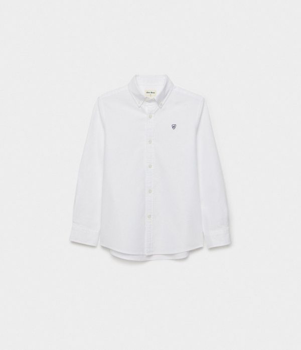 Camisa de estilo lisa y corte regular fit confeccionada en 100% algodón. Cuenta con cuello botón, manga larga con puños simples y logo de la marca grabado en el frontal a contraste.