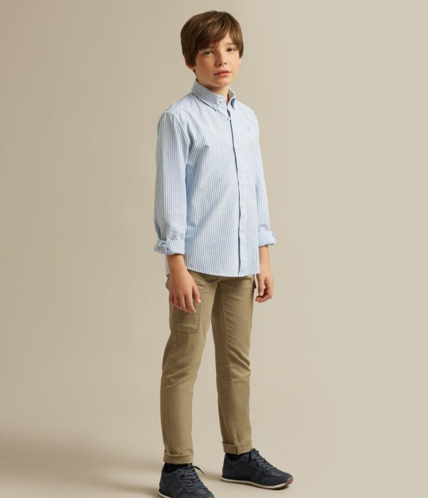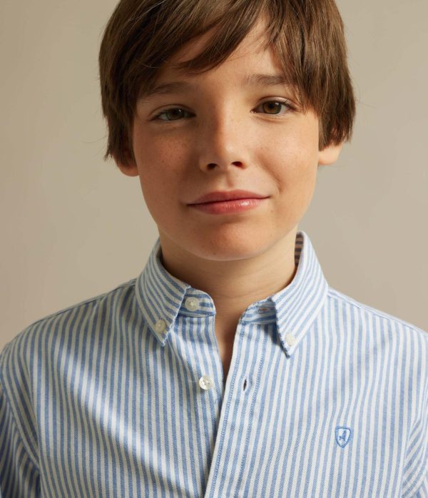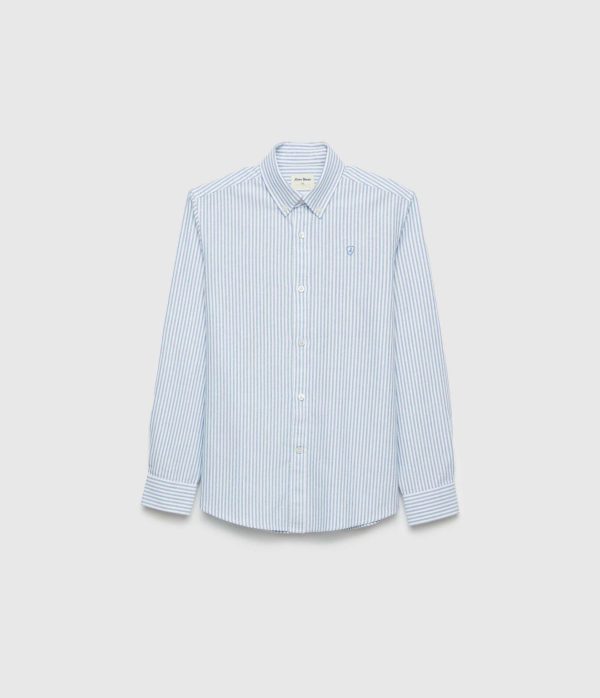 Camisa a rayas confeccionada en algodón. Cuenta con cuello botón, manga larga con puños simples y logo de la marca grabado en el frontal. Corte regular fit.