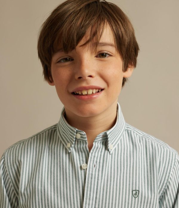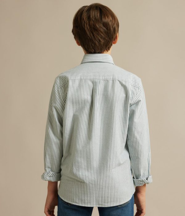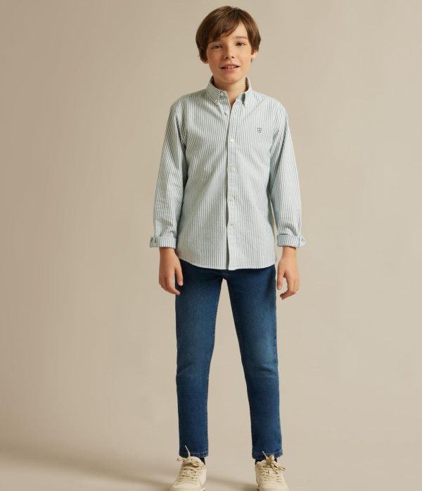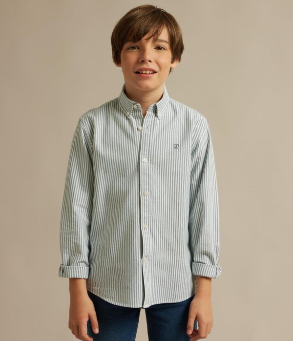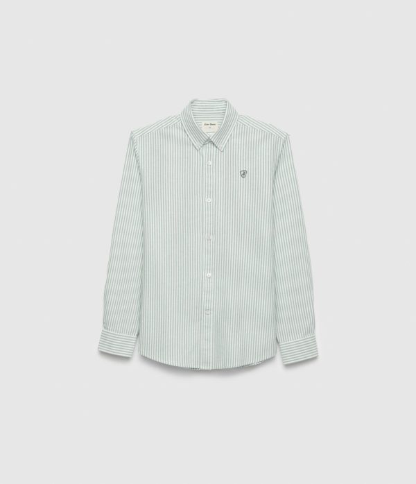 Camisa a rayas confeccionada en algodón. Cuenta con cuello botón, manga larga con puños simples y logo de la marca grabado en el frontal. Corte regular fit.