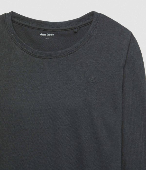 Camiseta de manga larga con cuello redondo, logo de la marca grabado en el frontal al tono y etiqueta canvas personalizada en el lateral. Corte regular fit.