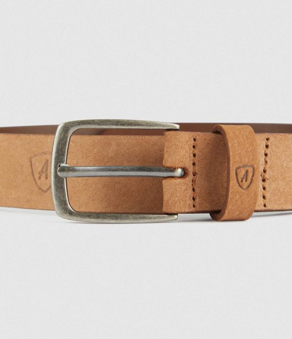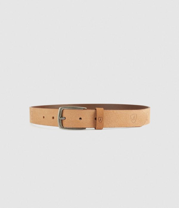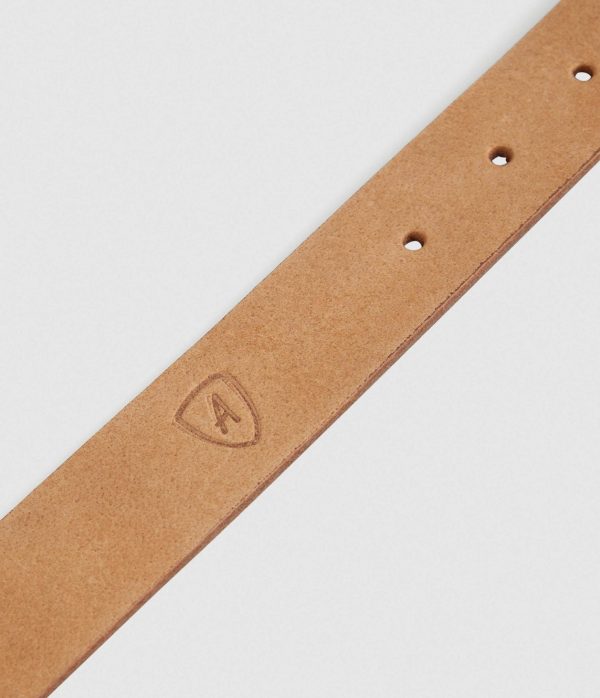 Cinturón con cierre central mediante hebilla metálica, pasador al tono y logo de la marca grabado al tono.