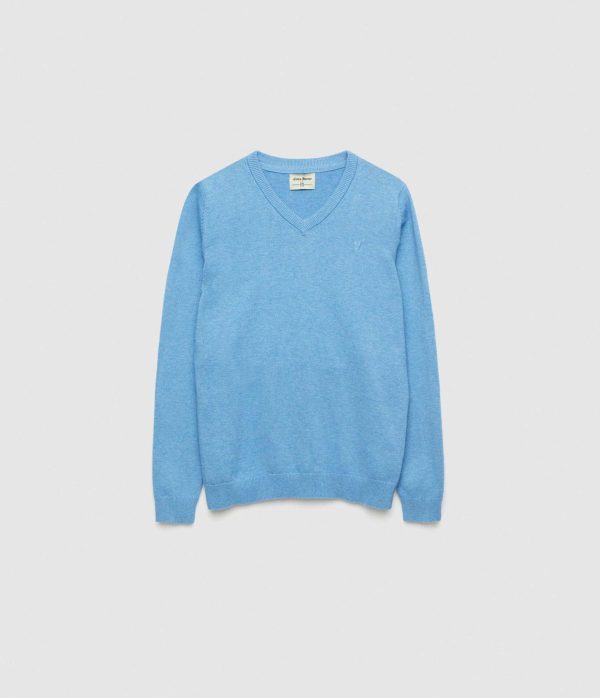 Jersey liso con cuello de pico, manga larga y logo de la marca grabado en el frontal al tono. Puños y bajo en acabado elástico. Corte regular fit.