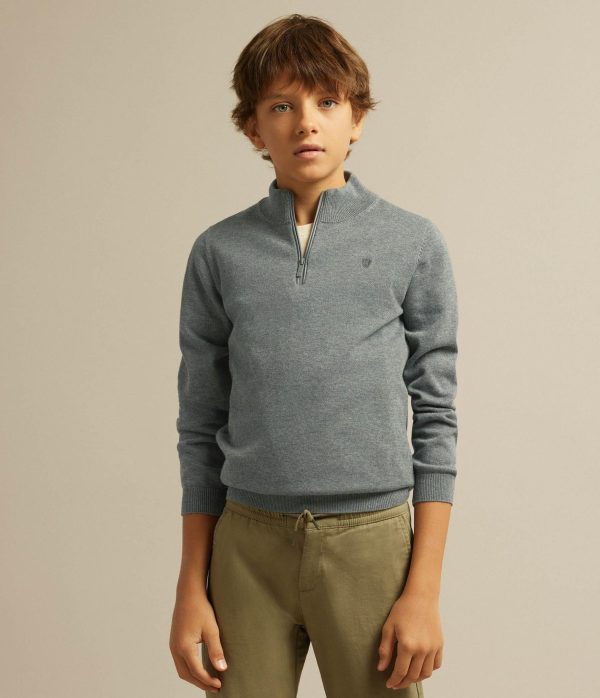 Jersey de cuello alto con cierre de cremallera confeccionado en 100% algodón. Cuenta con logo bordado en el frontal, bajo, puños y cuello ribeteados y corte regular fit.