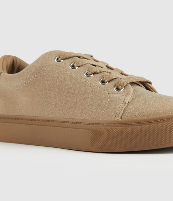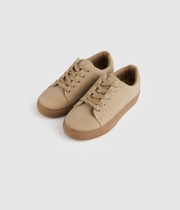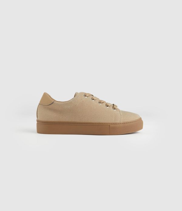 Sneakers confeccionadas en tejido de serraje. Cuenta con cordones al tono de hasta cinco pasados, suela de goma color caramelo y talón reforzado mediante tira. Detalle personalizado en la lengüeta.