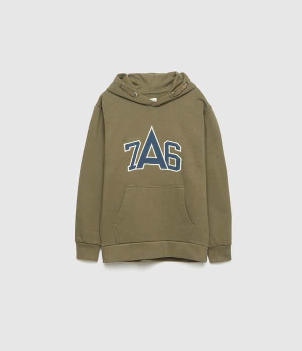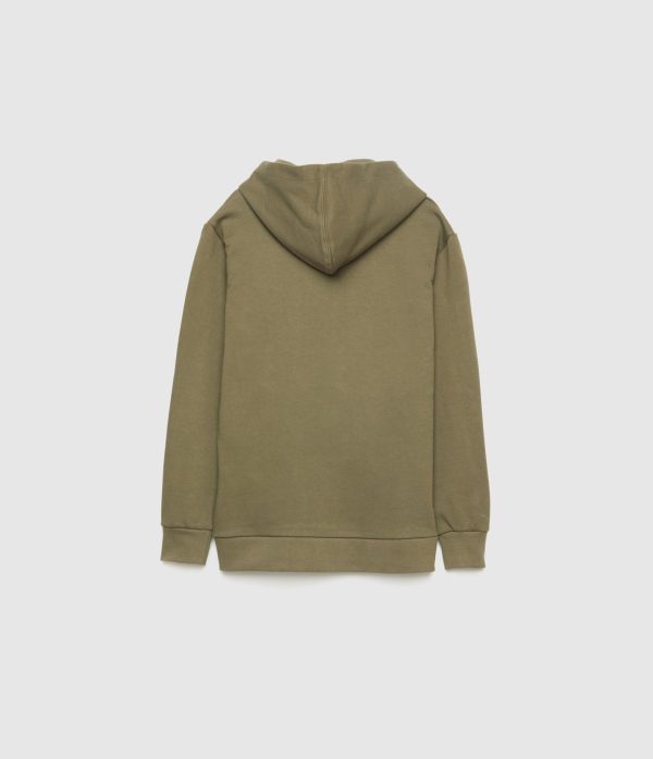 Sudadera con gorro ajustable, estampación personalizada en el frontal y bolsillo estilo canguro. Puños y bajos en acabado elástico. Etiqueta canvas en el lateral. Corte regular fit.