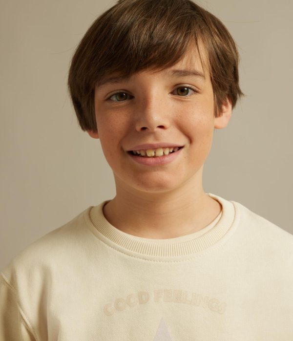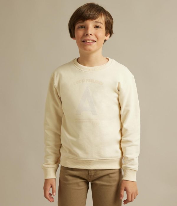 Sudadera con estampación personalizada en el frontal. Cuello redondo, manga larga y etiqueta canvas en el lateral. Puños y bajo en acabado elástico. Corte regular fit.